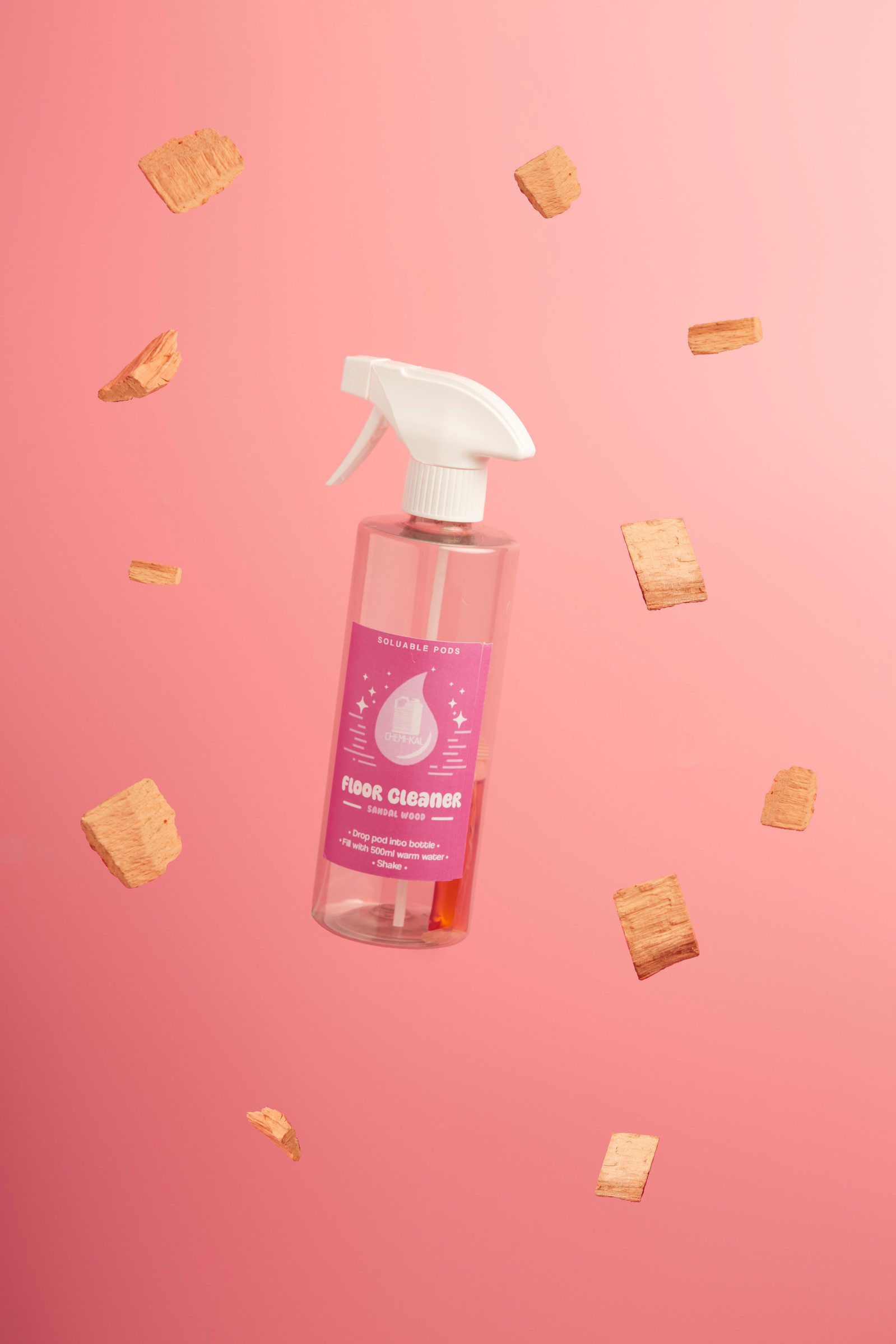 We recommend you add your sachet to your bottle of choice, either your own reusable bottle or one purchased from us. Dilute to 250ml in warm water, then use 50ml per 5L bucket of water or spray mop with extra tap water.